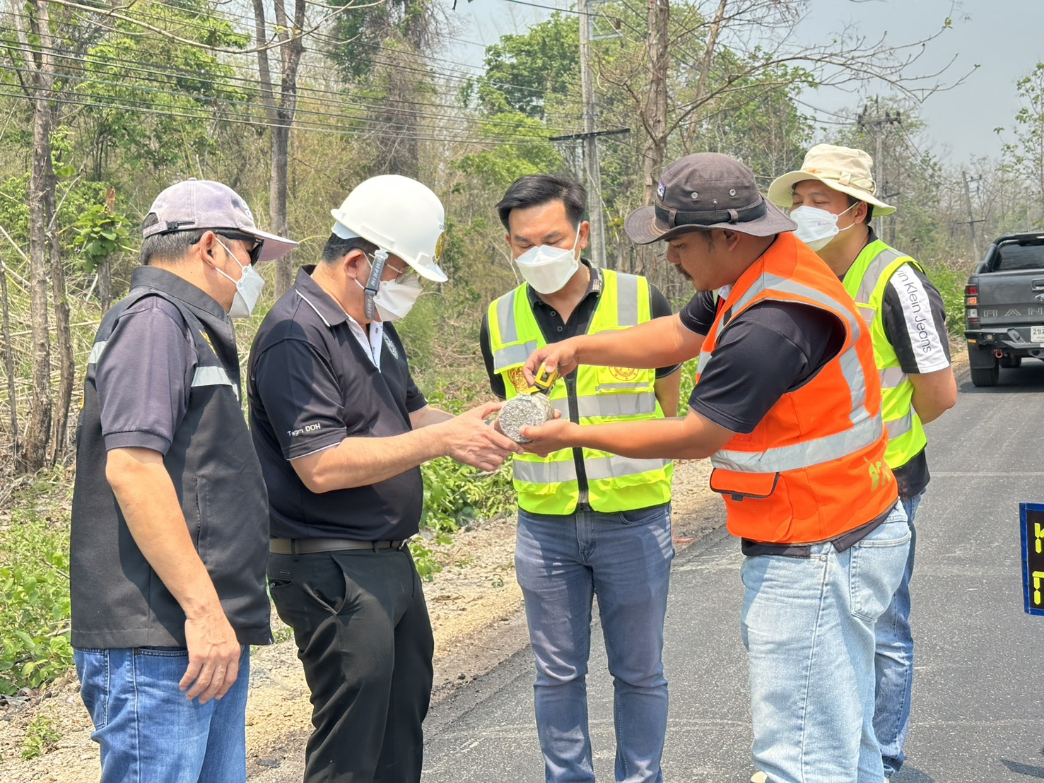 นายวันเฉลิม เจตะบุตร รองผู้อำนวยการแขวงทางหลวงลำปางที่ 1 ฝ่ายวิศวกรรม กรรมการฯ นายชัยวัฒน์ เตชะนันท์ หัวหน้างานหมวดทางหลวงสบปราบ กรรมการฯ นายวิทยา กาวิละ วิศวกรโยธาปฏิบัติการ ผู้ควบคุมงาน