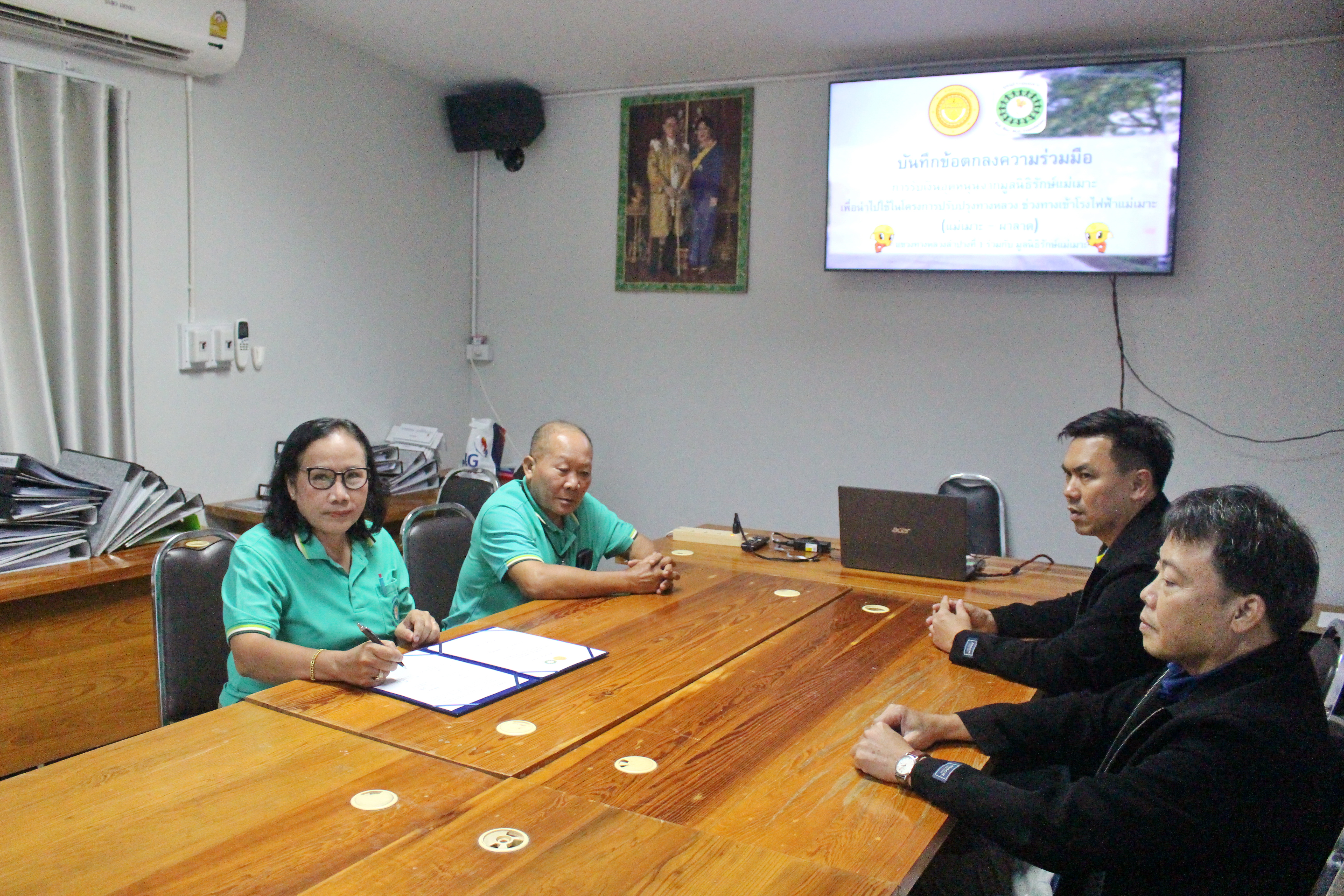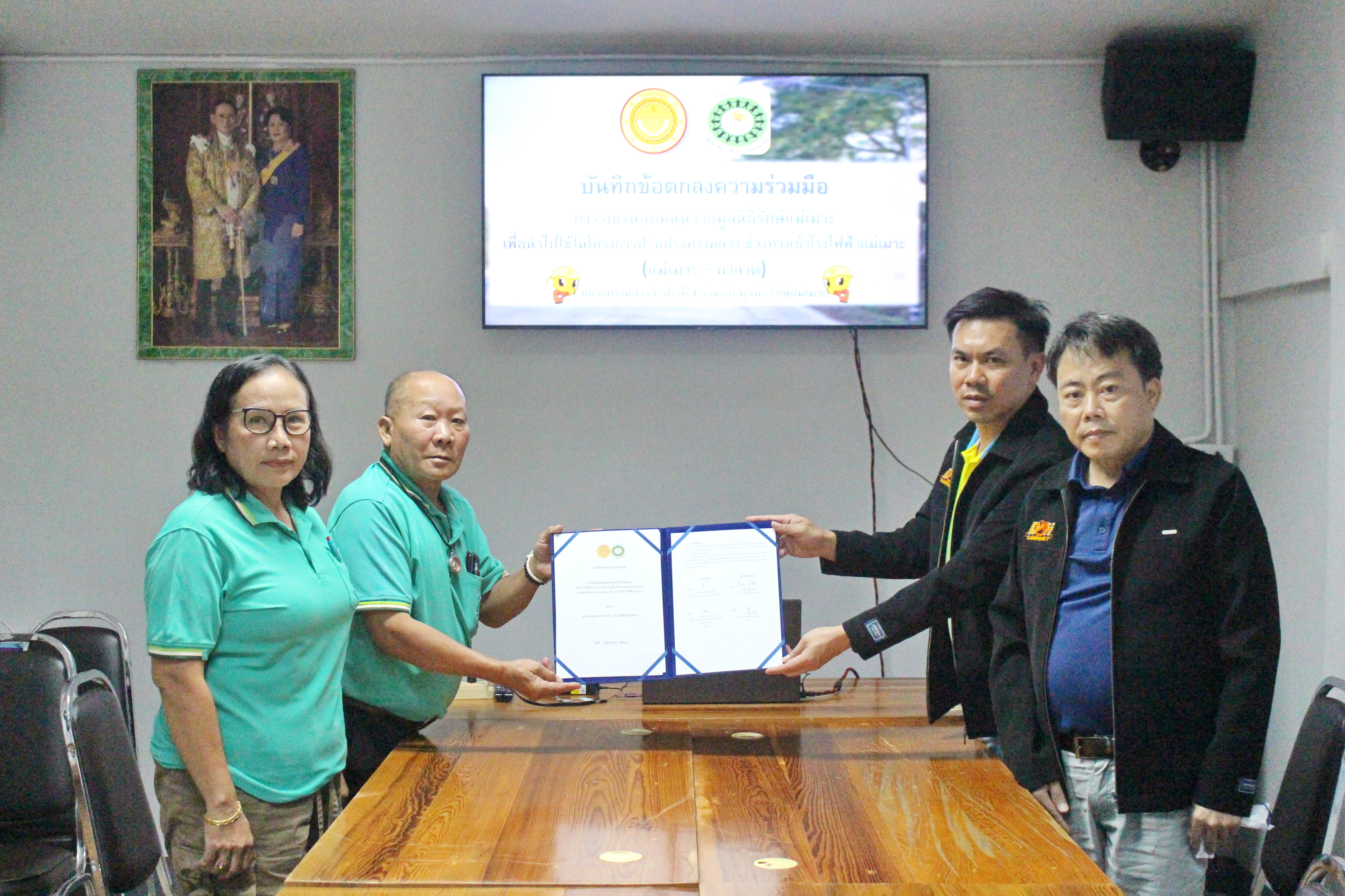 บันทึกข้อตกลงความร่วมมือการรับเงินอุดหนุนจากมูลนิธิรักษ์แม่เมาะ เพื่อนำไปใช้ในโครงการปรับปรุงทางหลวง ช่วงทางเข้าโรงไฟฟ้าแม่แมาะ