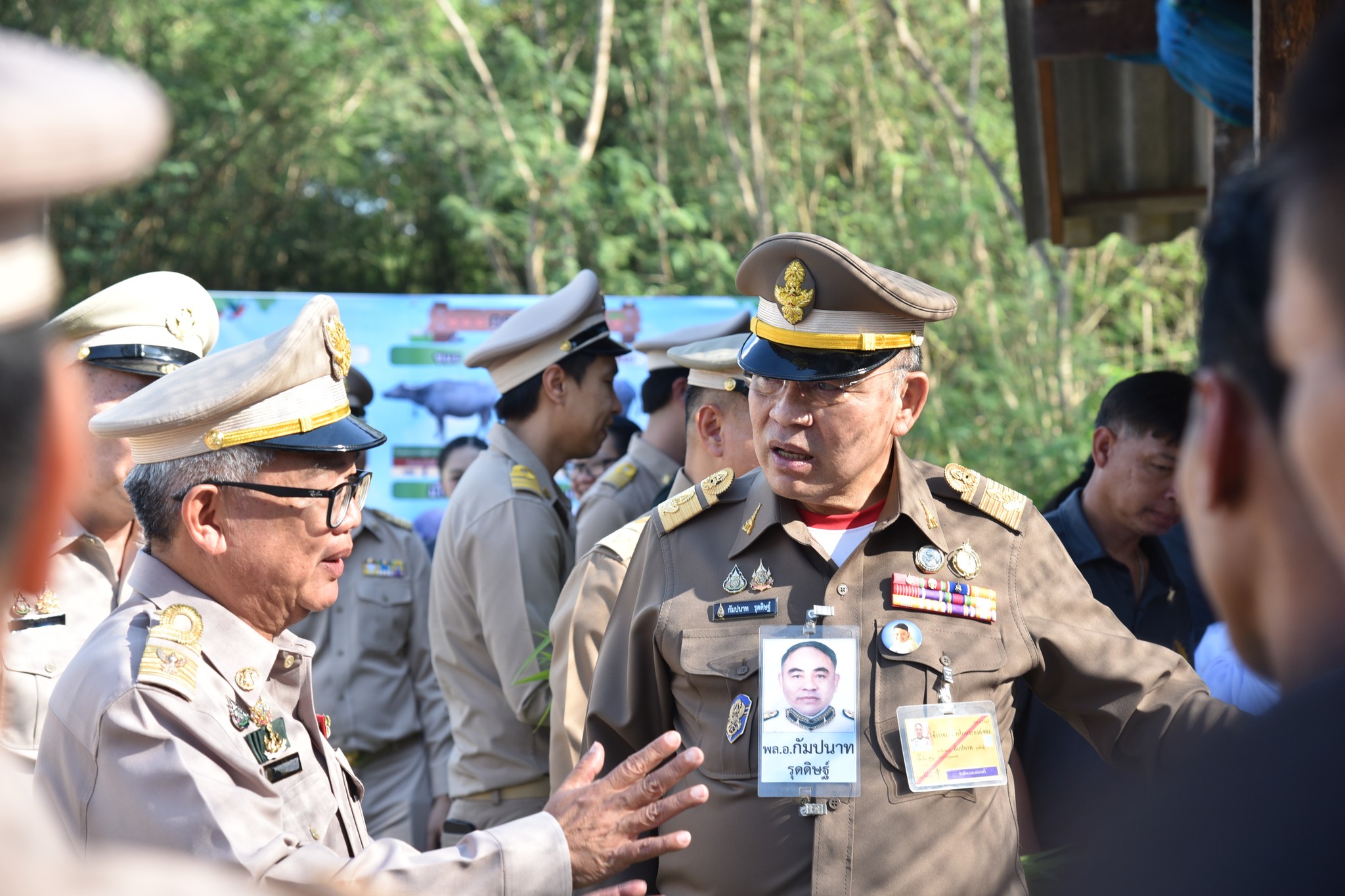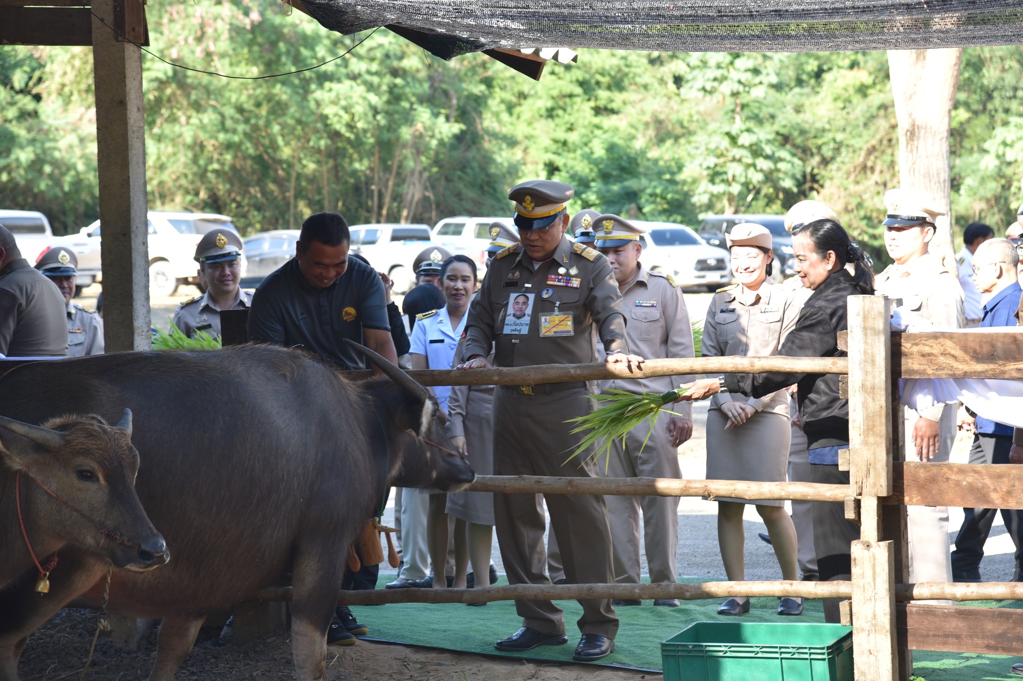 ในโอกาสนี้ องคมนตรีได้ป้อนหญ้าให้แก่แม่กระบือและลูกกระบือ พร้อมสอบถามถึงความเป็นอยู่และการดูแลจัดการโครงการไถ่ชีวิตสัตว์