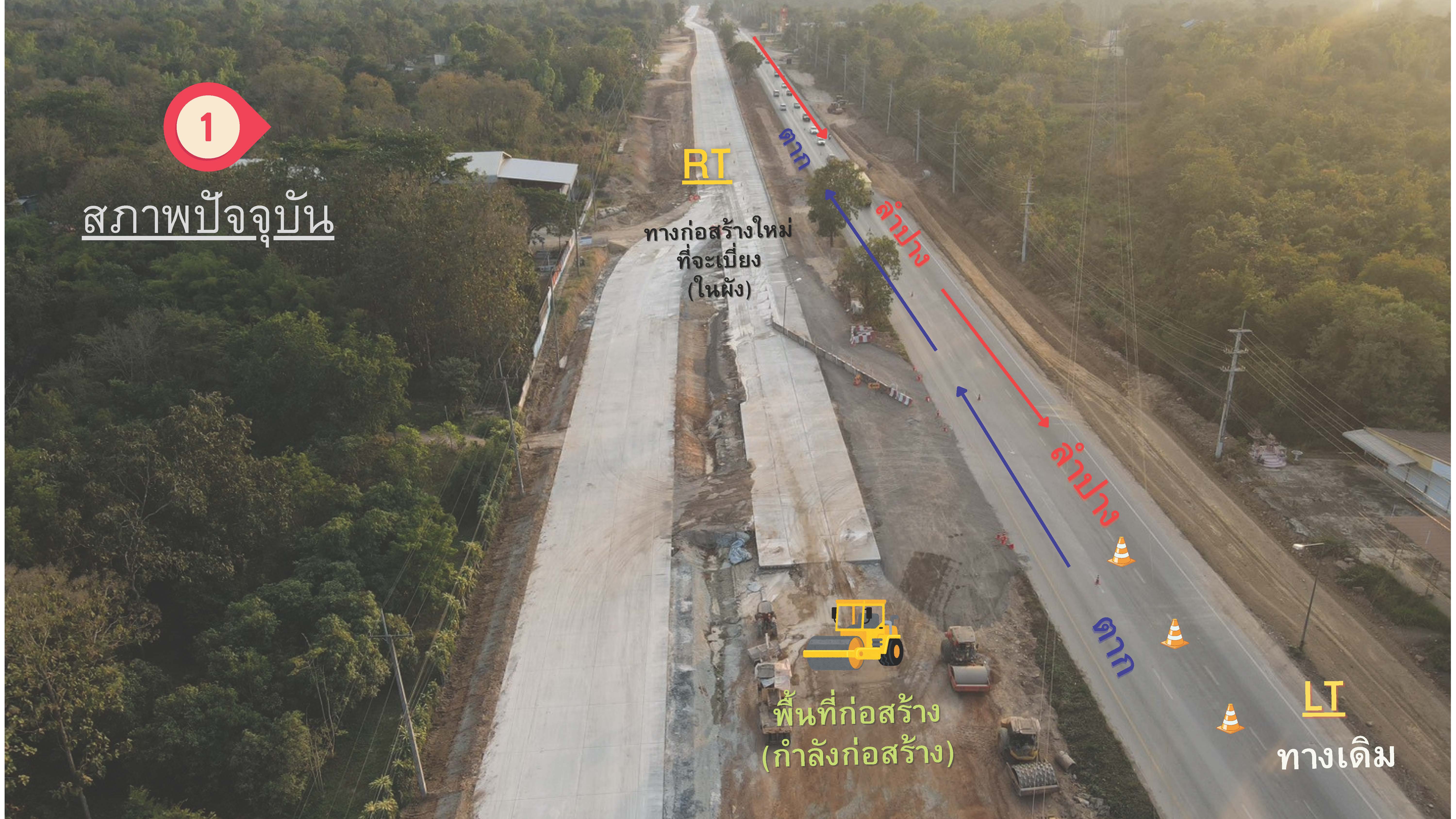 บริเวณดังกล่าว เป็นการเบี่ยงการจราจรให้รถสัญจรสองทิศทาง ขาขึ้นและขาล่อง(2เลน รถวิ่งสวนกันฝั่งละเลน) บริเวณทางเดิมที่ยังไม่ได้ทำการก่อสร้าง