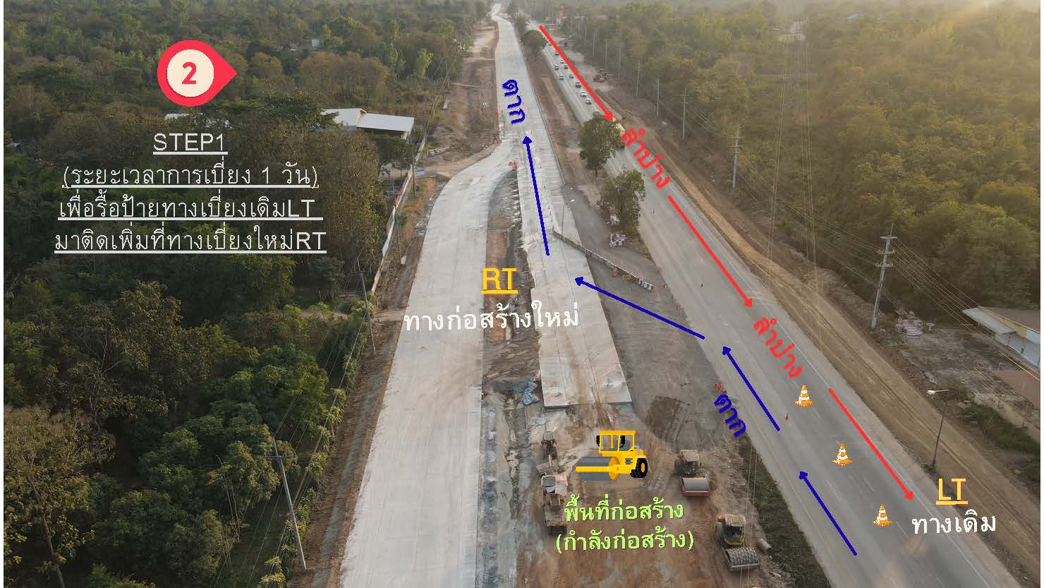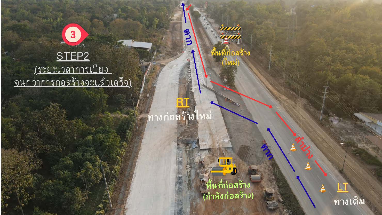 โครงการฯ ขอแจ้งแผนการเบี่ยงทางเพื่อเร่งรัดทำการก่อสร้างทางด้านซ้ายทาง